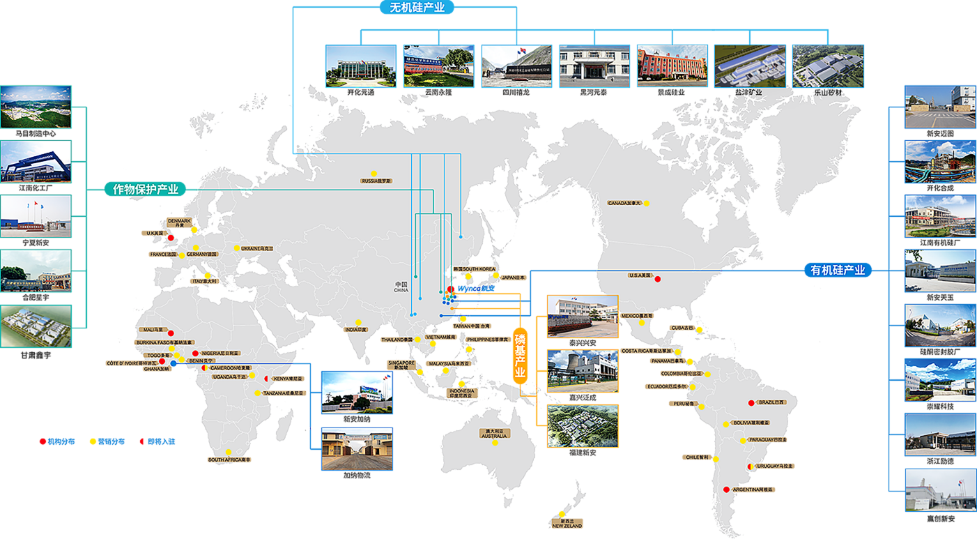 Wynca is mainly engaged in three industries: crop protection, silicon-based new materials and new energy materials. The crop protection industry has formed an integrated development model of "intermediate - original drug - preparation", covering seeds and seedlings, herbicides, insecticides, fungicides, crop nutrition and other products, providing comprehensive solutions to ensure food security and help increase yields and incomes. Silicon-based new materials have a complete industrial chain from mining and smelting upstream silicon, organic silicon monomer synthesis and manufacturing downstream products, which are widely used in electric power communication, rail transportation and automobile, medical and health care, consumer electronics and other fields in more than 130 countries and regions worldwide. Based on the strengths of the phosphorus-based and silicon-based industries, New Energy Materials has built comprehensive material solutions around new energy application scenarios, building a new "three-legged" development pattern with the other two industries.