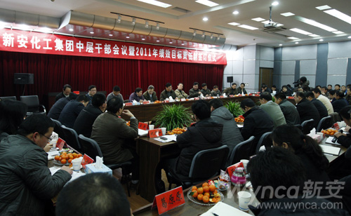 会上,季诚建总经理表示将继续带领经理班子做好各项工作,并简要分析了2010年公司生产经营情况。之后,他从分析集团公司“十二五”规划情况入手,激励各级经营者要在严峻的经济形势下,发挥公司在产业链、品牌效益、渠道建设和良好信誉的优势,积极创新,不断开拓,力争圆满地完成公司下达的各项目标任务。传化集团公司总裁应天根指出,在两大产业面临着行业竞争激烈、市场严重过剩的情况下,公司草甘膦、有机硅能够保持产销平衡十分不易,对此他代表传化集团对新安化工全体干部员工付出的辛勤努力表示感谢。应天根总裁还介绍了传化集团2010年的“定战略、建机制、搭平台、夯基础”十二字战略。