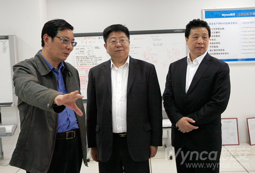 4月6日下午,宁夏回族自治区商务厅副厅长邓宽(左二)一行到集团考察,在集团副董事长季诚建和总裁助理、农化事业部总经理周卫星的陪同下参观了集团马目化工园区。