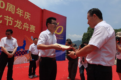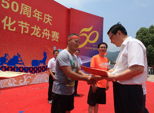 周年庆暨第四届新安文化节龙舟赛在新安江上举行,共有