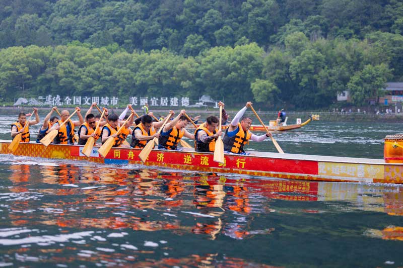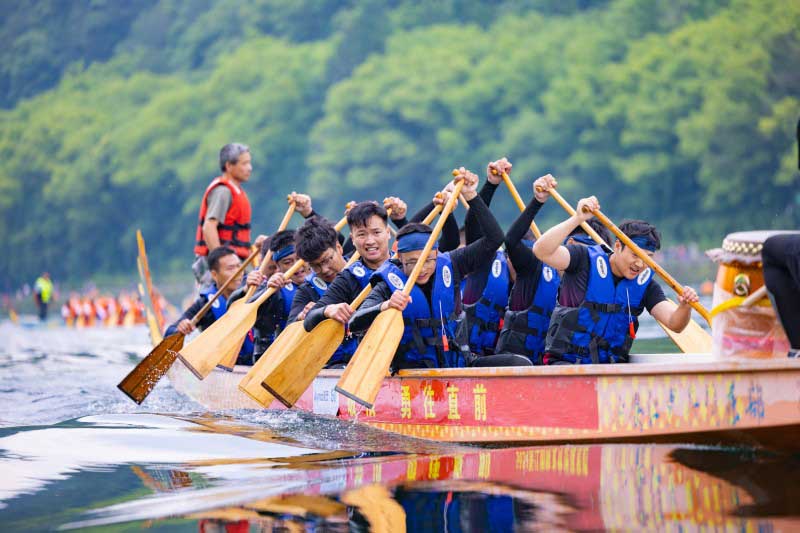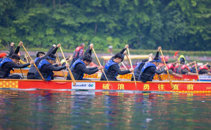 奋楫争先启新程,逆流而上谱新篇。5月31日,正值端午佳节,第九届新安文化节龙舟赛活动盛大启幕,新安股份领导吴严明、周曙光等亲临现场观赛助阵。
