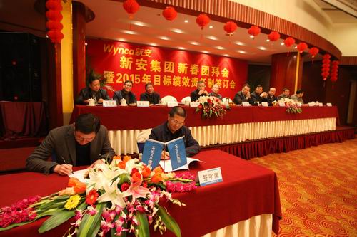 2月7日,新安集团举行新春团拜会暨2015年目标绩效责任制签订会。传化集团领导徐冠巨、吴建华、杨柏樟,新安集团领导王伟、季诚建、林加善、潘秋友、刘侠、任不凡、姜永平、吴严明、周卫星,与百余名中层管理人员欢聚一堂,回顾总结成长得失,共商未来发展大计。